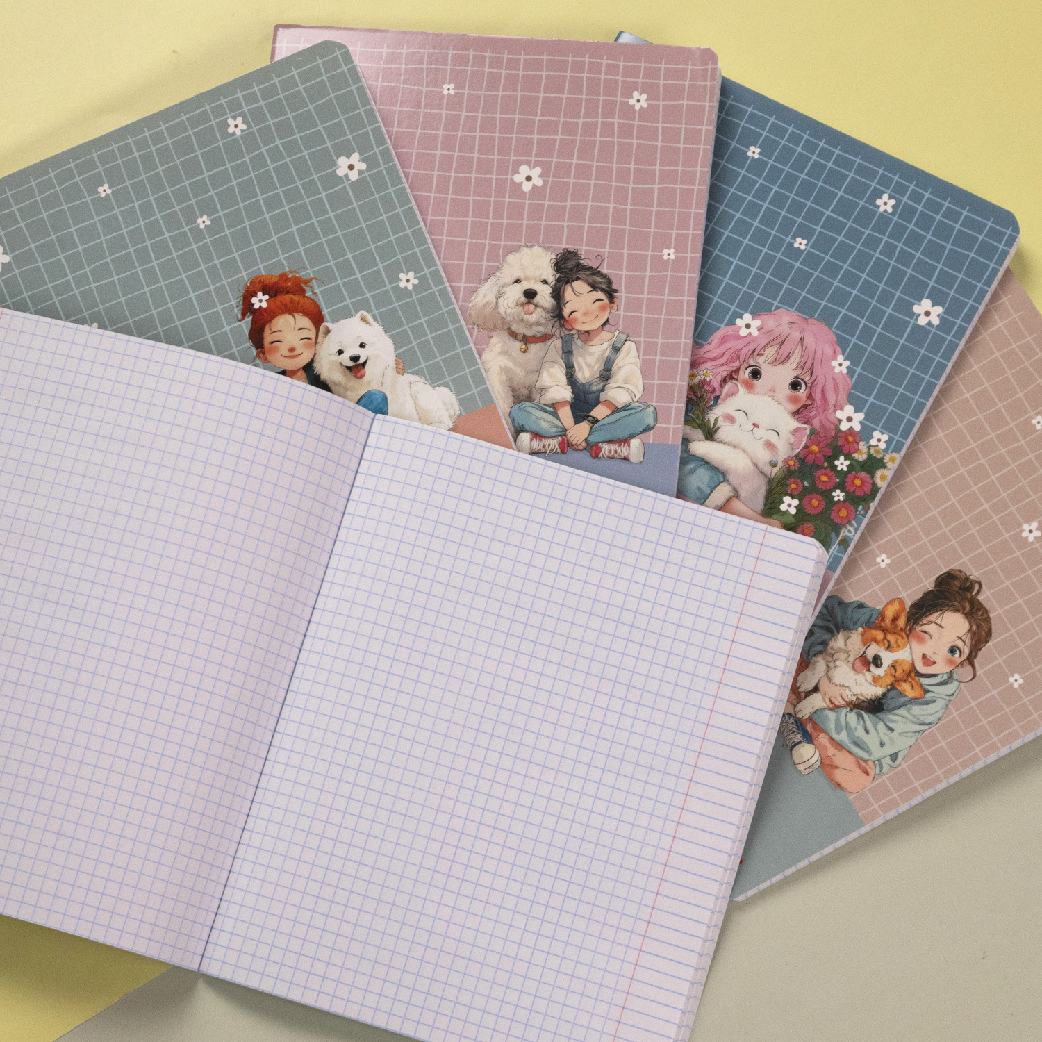 Дизайны солнечные и добрые, с собакенами и котиками, а также их хозяйками. Самое то, если хочется вспомнить тёплую весну или лето. На обложках серии есть линии для персональной информации.